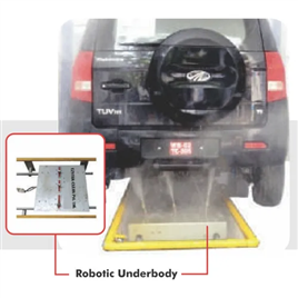 This system is provided with robotic undercarriage wash with nine oscillating nozzles on a moving gantry covering every corner of the undercarriage from front to back. Complete system is provided with relay login control and sensors for locating the vehicle and also selecting the vehicle length with easy operating remote panel.